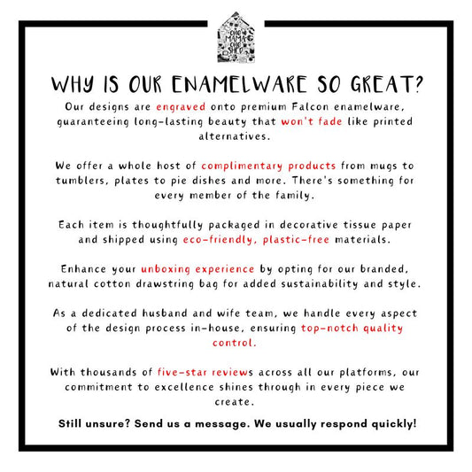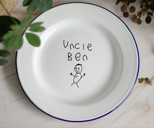 Treasure your child's doodles for life by engraving them on timeless enamelware.