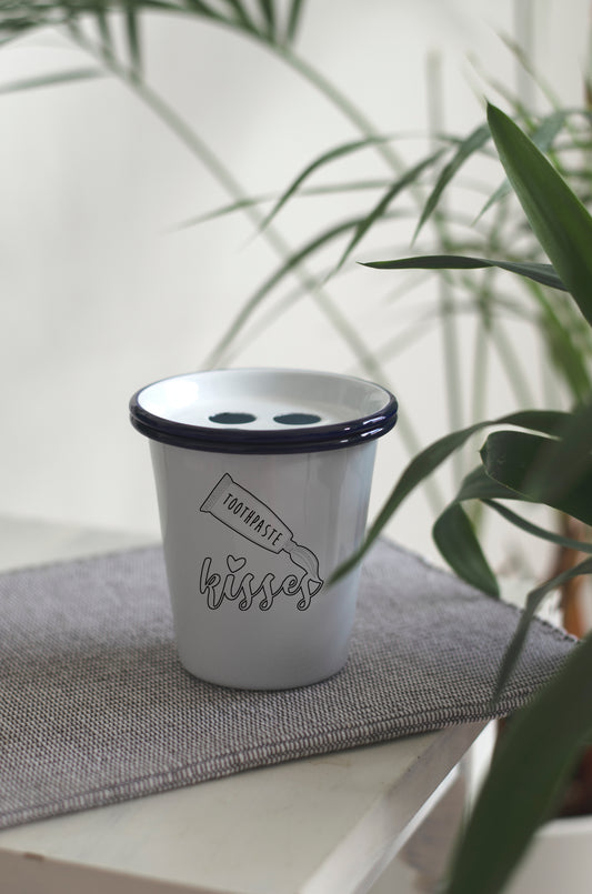 Toothpaste Kisses - Engraved Enamel Toothbrush Holder