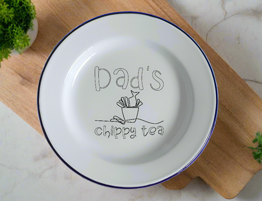 Chippy Tea Plate - Engraved Enamel Plate