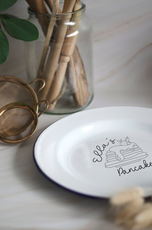 Pancake Plate - Engraved Enamel Plate