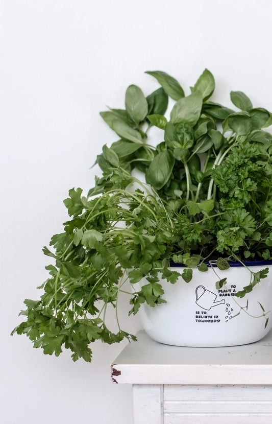 To Plant a Garden Is To Believe In Tomorrow - Engraved Enamel Planter
