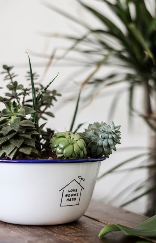 Love Grows Here - Engraved Enamel Planter